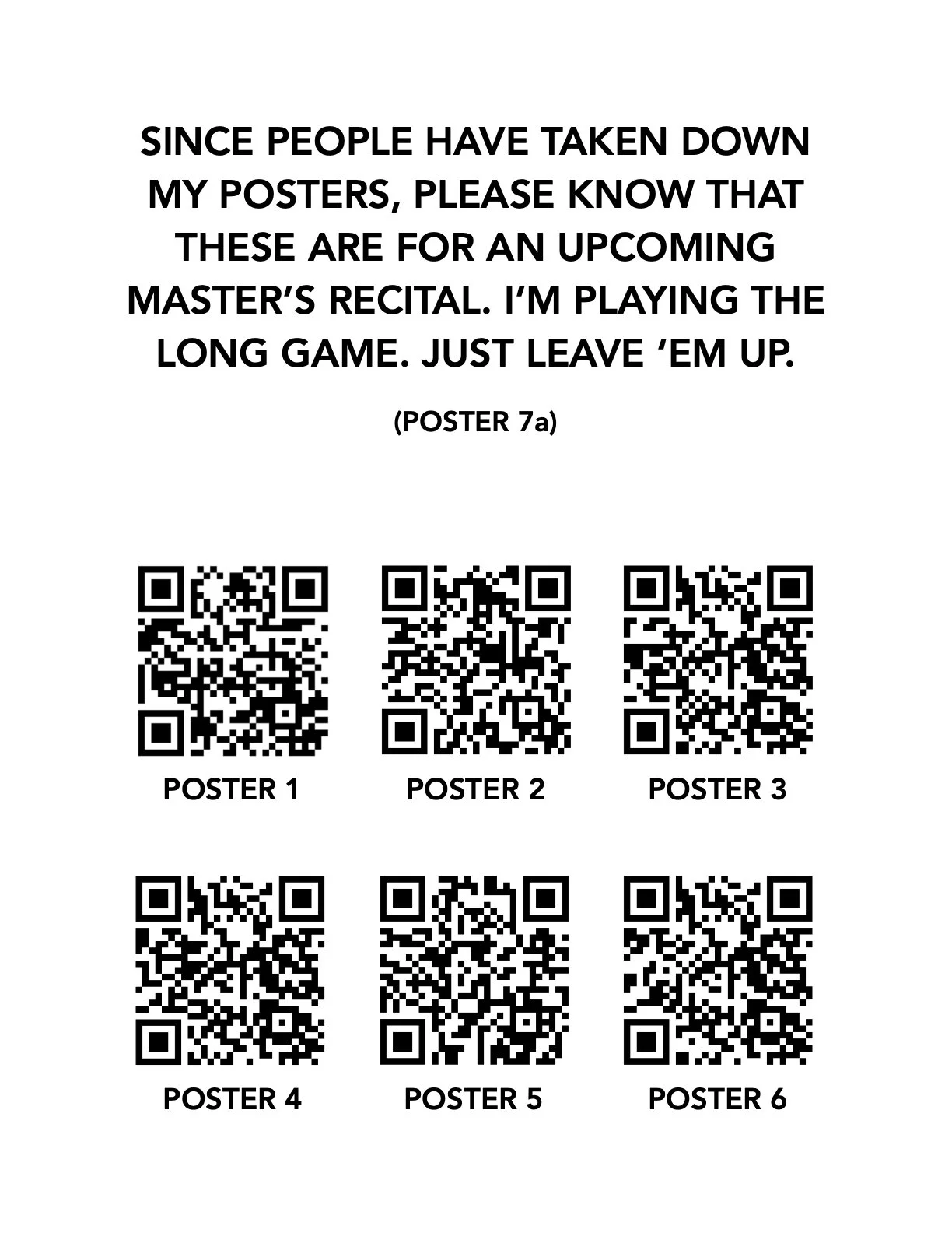 POSTERS A series of 10 posters (9 planned in advance) hung in the University of North Texas College of Music to promote the world premiere of GTM1. POSTER 1 POSTER 2 POSTER 3 POSTER 4 POSTER 5 POSTER 6 POSTER 7 POSTER 7a POSTER 8 POSTER 9